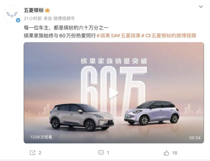 易车讯我们从上汽通用五菱官方关系,缤果家族累计销量突破60万辆。在这其中,于9月27日上市的缤果S上市首月销量突破24000辆。